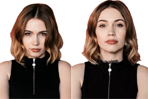 Совет: чтобы визуально уменьшить ширину лица, сдвигай волосы ближе к носу, и наоборот.